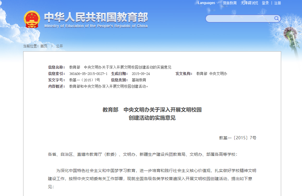 教育部 中央文明办关于深入开展文明校园 创建活动的实施意见